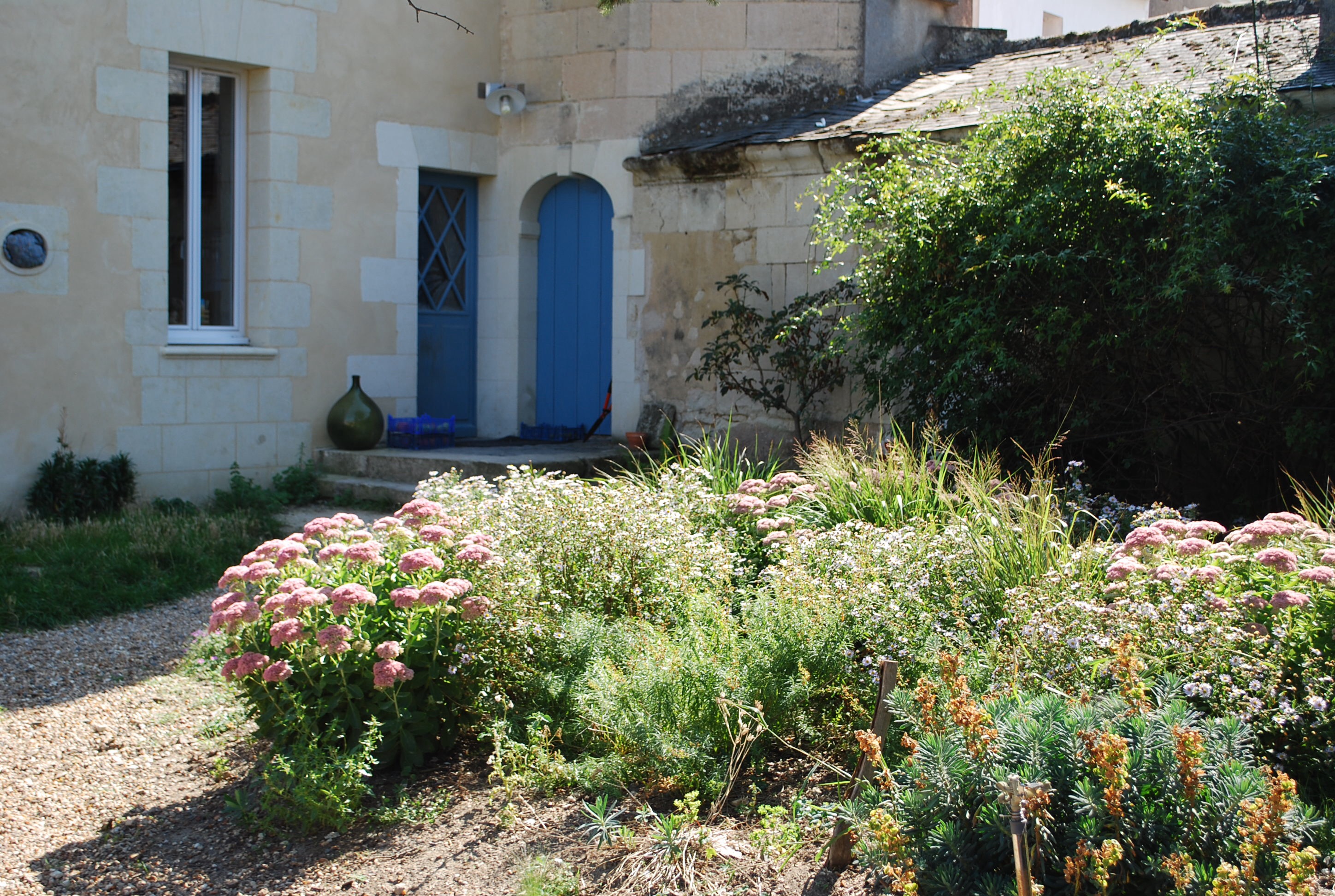 It is a quaint town south of Paris, and I have yearned to come and visit Janette in her home abroad many many times. Her home is filled with artistic touches, really filled with her. She has an exquisite eye for detail, a wonderful and talented artist, and she takes great care in all that she does, and has a wonderful knack for the details of life. Her home is a subtle mix of stone walls, terra cotta floors, to the most lovely narrow wooden staircase, which incidentally she runs up and down both flights as if it were a “cake walk.”I can barely walk these stairs very gingerly by the way..