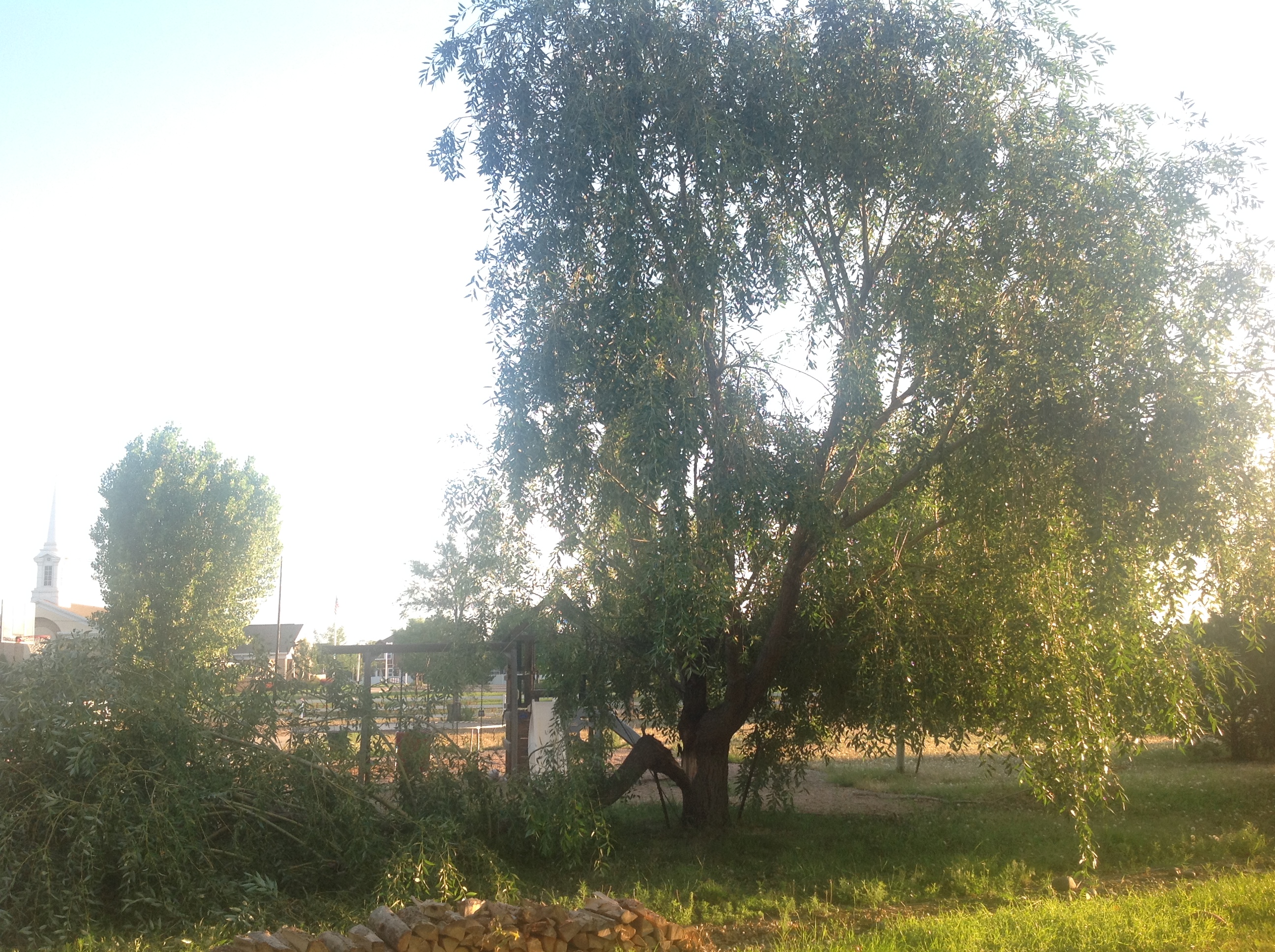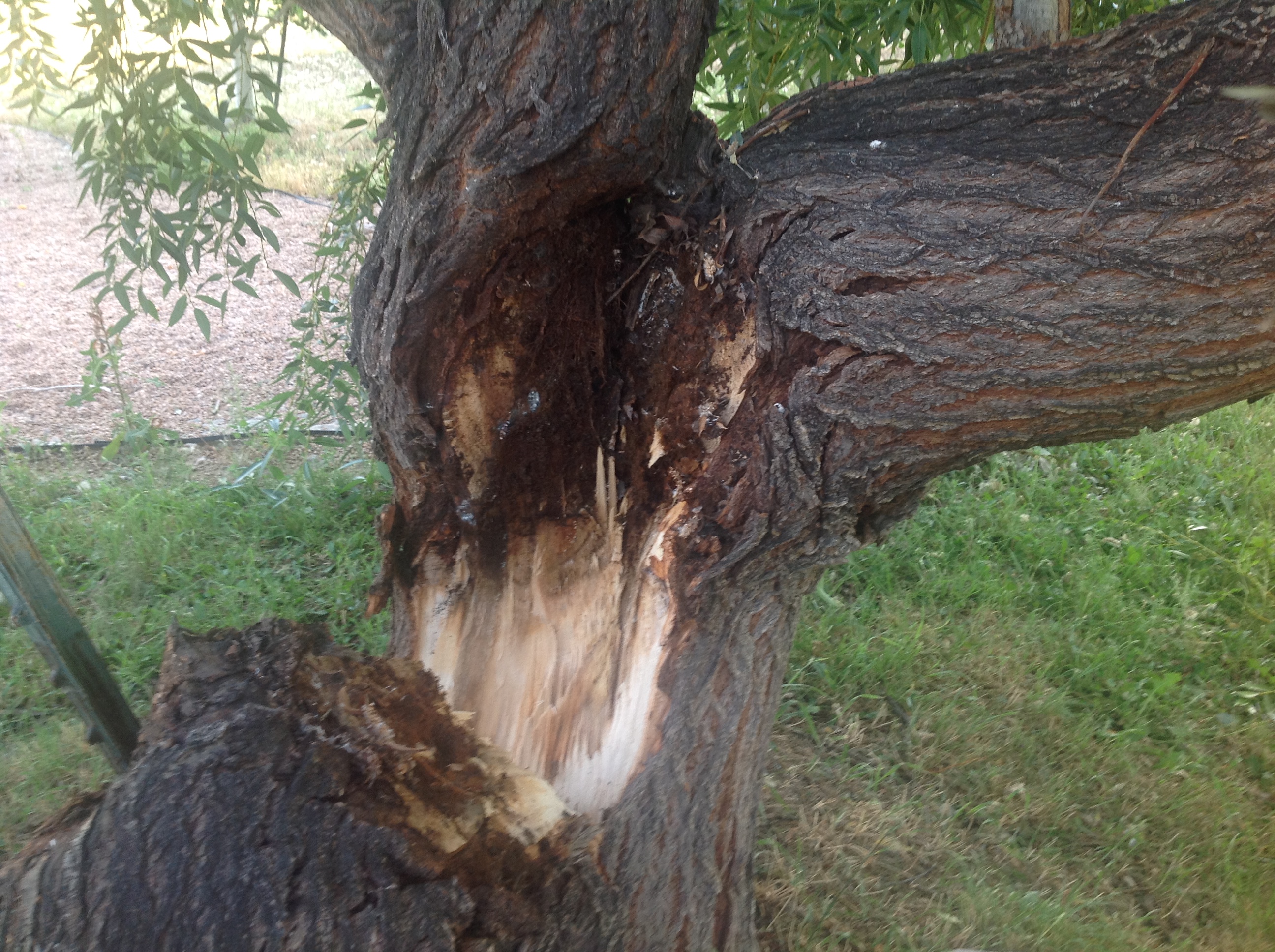 As I gazed out back, I was in shock….there she was, my glorious mended willow split exactly in two…. It was Independence Day yesterday, and she had somehow split her lovely self in two on July 4th.