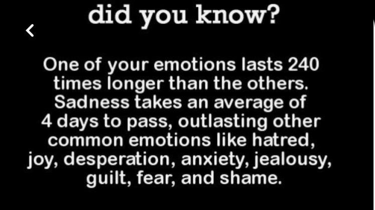 This was fascinating to learn.. Sadness, no wonder it takes so much energy to be in this emotion, and we feel a sense of exhaustion when we live in this emotion after loss.