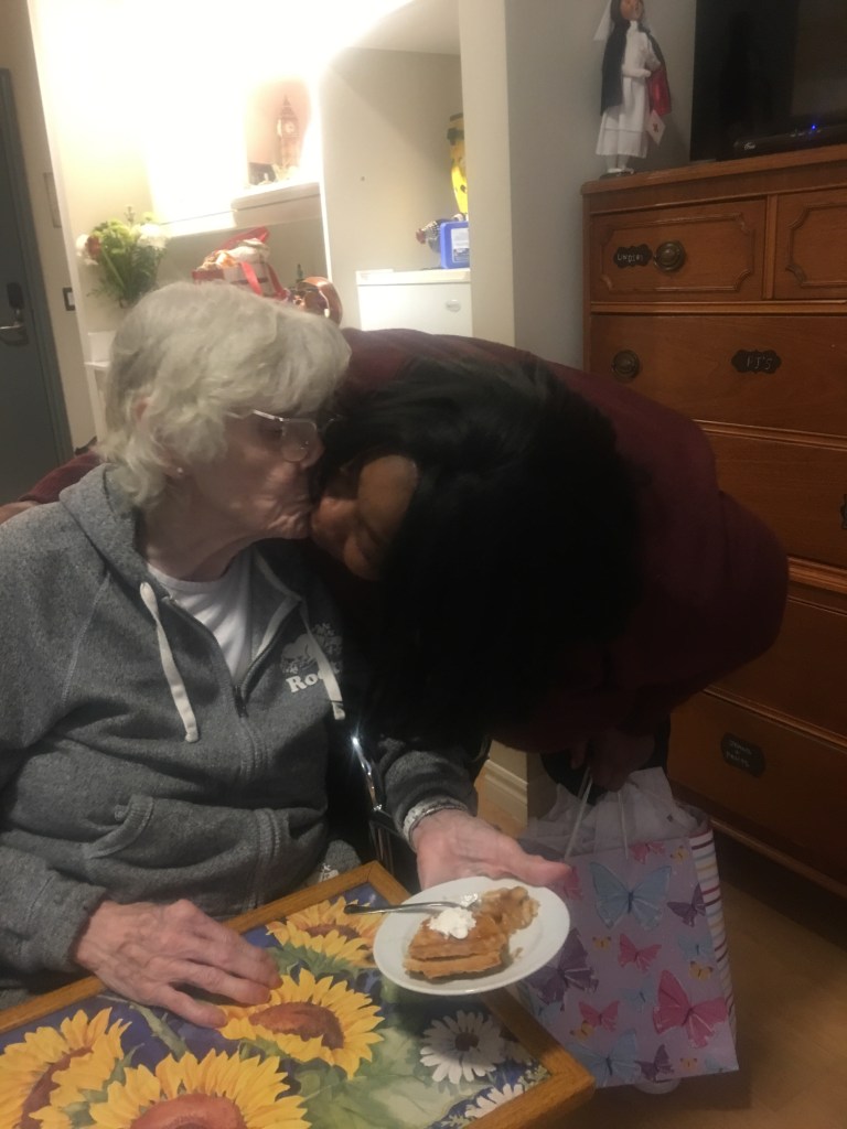 Mum is recovering well, and feeling stronger every day. We are grateful. When she arrived back at her residence, she was kept in her room for 5 days, since she had been at the hospital. Barbara went back and forth to the dining room, and brought her meals back on trays, bathed her, and took excellent care… as she always does… amazing woman that she is.