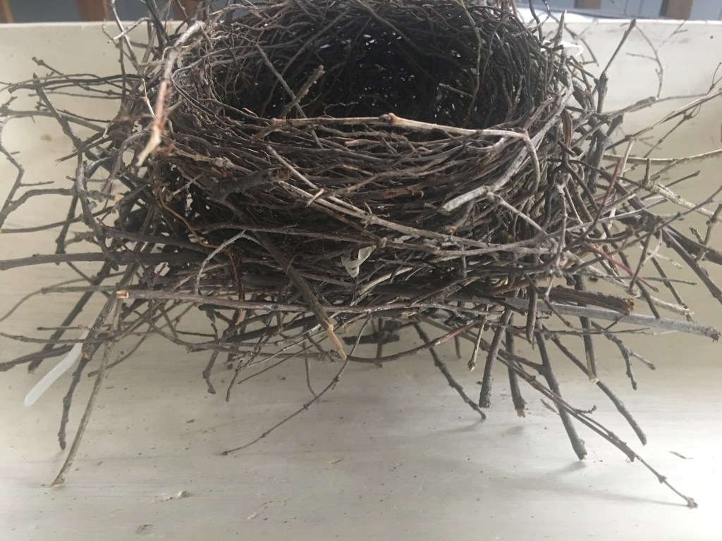 I was struck by the intricate detail of the construction of this bird home. It had larger sticks on the outside, and the inside had gradually smaller sticks, so it could form a cozy round circle. It was a sturdy structure. It will be interesting to see if another bird will decide upon it for a second home.. stay tuned.. I’ll be observing with my trusty binoculars for the relocation project from a safe distance of 6 feet..probably farther truth be told .
