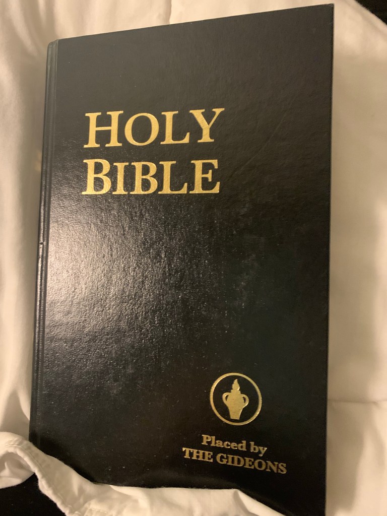 Imagine my surprise when I found this Bible this past weekend in the side drawer at the Mariott Hotel . Yup those Gideons still have placed these here. I thought about stealing it, then reprimanded myself for those thoughts. It prompted me to read the story in the Bible about Gideon.